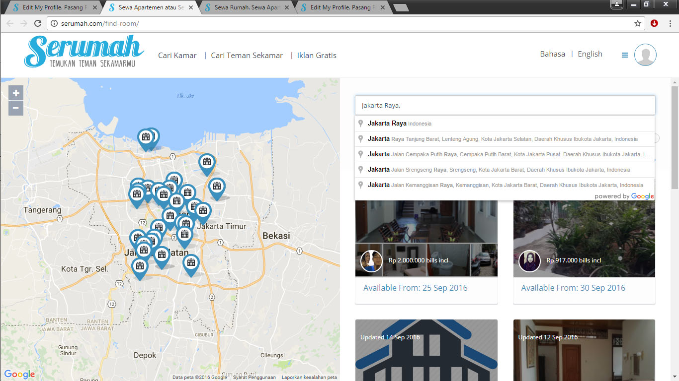 Yup, nama website nya serumah.com lucu juga itu domainnya. Fungsi nya buat cari roommate, kamar sewa, dan iklan gratis. Tentunya iklan yang bisa dipajang merupakan iklan penyewaan kamar yah… Kosan atau kontrakan gitu lah misalnya. Bukan iklan-iklan yang suka spam di ig itu lho ya… Ini website khusus buat hal yang berhubungan dengan pencarian tempat tinggal dan sewa, jadi nggak campur aduk kaya website sebelah. Eh…..
