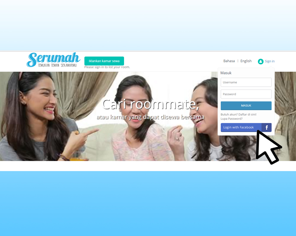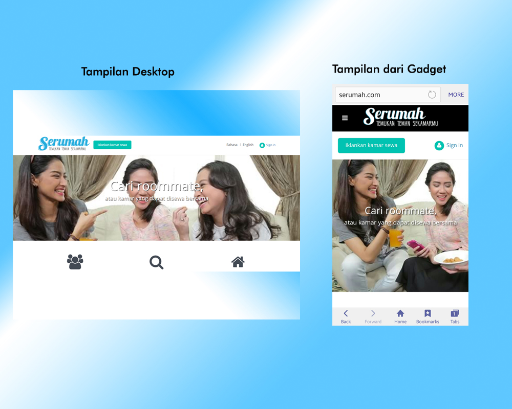 Serumah.com . Ini adalah platform yang menghubungkan kita untuk mencari temen sekamar “Roomate” yang mau berbagi kamar sekaligus biaya sewa dengan seseorang, seperti Kost /Flat ataupun Apartemen.