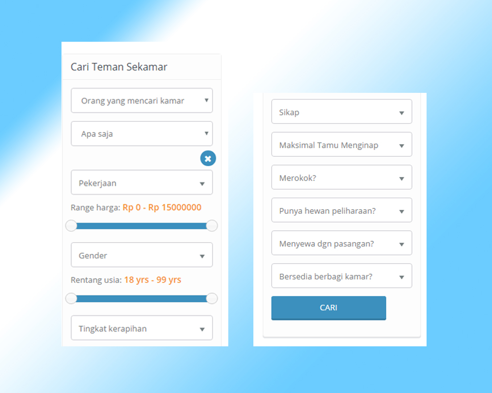 + Ada kategori Roommates, Professional ( pekerja) dan Student ( pelajar atau mahasiswa)