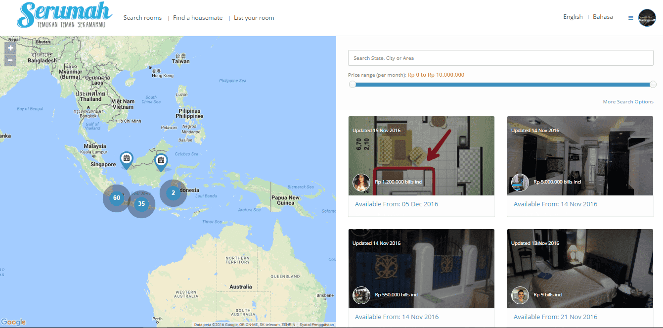 Jadi gini, serumah.com itu situs yang menghubungan antara teman-teman yang lagi nyari kamar kost dan teman sekamar yang mau diajak bayar kost bersama dan juga bagi teman-teman yang sudah memiliki kamar kost yang ingin mencari teman sekamar untuk diajak bayar kost patungan bisa mengiklankan kamar teman-teman pada fitur pencari roomate yang selanjutnya akan saya bahas