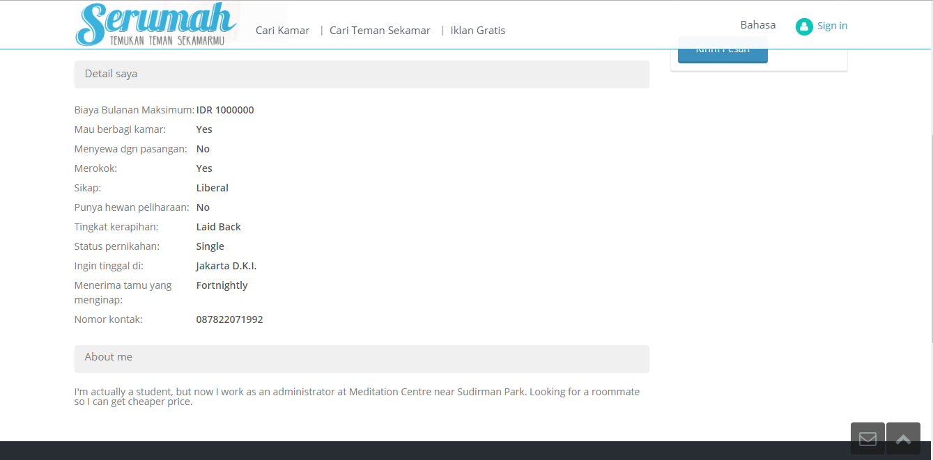 serumah.com kita bisa mengatur kriteria teman sekamar kita berdasarkan apa yang kita mau.