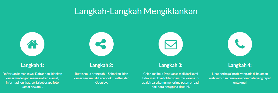 Seperti opiniku sebelumnnya, ide dari web ini benar-benar menarik dan sangat membantu. Fyi, di luar negeri sudah banyak menerapkan sistem mencari roommate walaupun kedua belah pihak dalam kategori stranger. Tetapi kalau sama-sama dapat menguntungkan kenapa tidak. Selain bisa split uang sewa, kalian dapat teman baru, tidak tinggal sendiri dan bisa belajar untuk tinggal bersama orang lain. jadi aku harap, Web ini bisa berkembang cepat dan dapat membantu orang-orang yang memerlukan fitur ini.